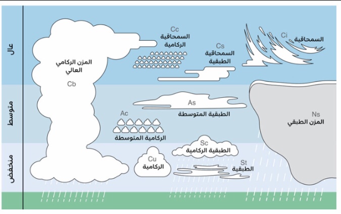 تُصنّف الغيوم اعتماداً على عاملين رئسيين هما : الموقع والشكل , حيث توجد الغيوم على ارتفاعات مختلفة من سطح الأرض كالغيوم عالية المستوى هي التي تتشكل على ارتفاعات ترتفع عدة كيلومترات عن سطح الأرض , والغيوم متوسطة المستوى , والغيوم منخفضة المستوى التي قد تُلامس الأرض فيُطلق عليها اسم الضباب